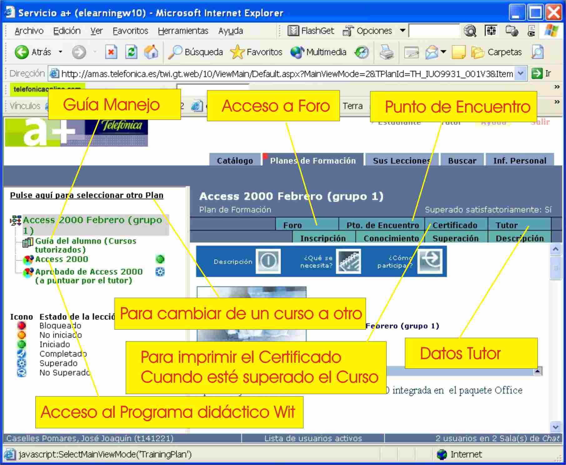 Si tienes algún problema con el acceso al curso en a+, puedes consultar el siguiente documento: Acceso a cursos Office 2000.exe